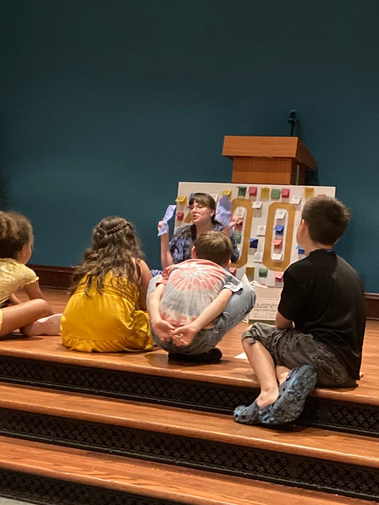 On Tuesday, it was an extremely small group of about ten young children, most were nine and under, and a few 11-year-olds. Instead of breaking this small group into three smaller groups and running 3 activities at once, we just all traveled from station to station. We had eight Volunteens, so it ended up being a more hands-on training and watching day for them to see how the Summer Program is run on a smaller scale.